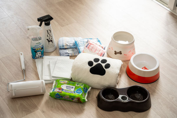 ●ペット用アメニティ(トイレ、トイレシート、ウンチ袋、バスタオル、食器、クレートなど)をご用意