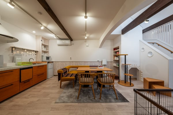 食事場所ではクレートに入れて指定の場所に置いて頂きます。